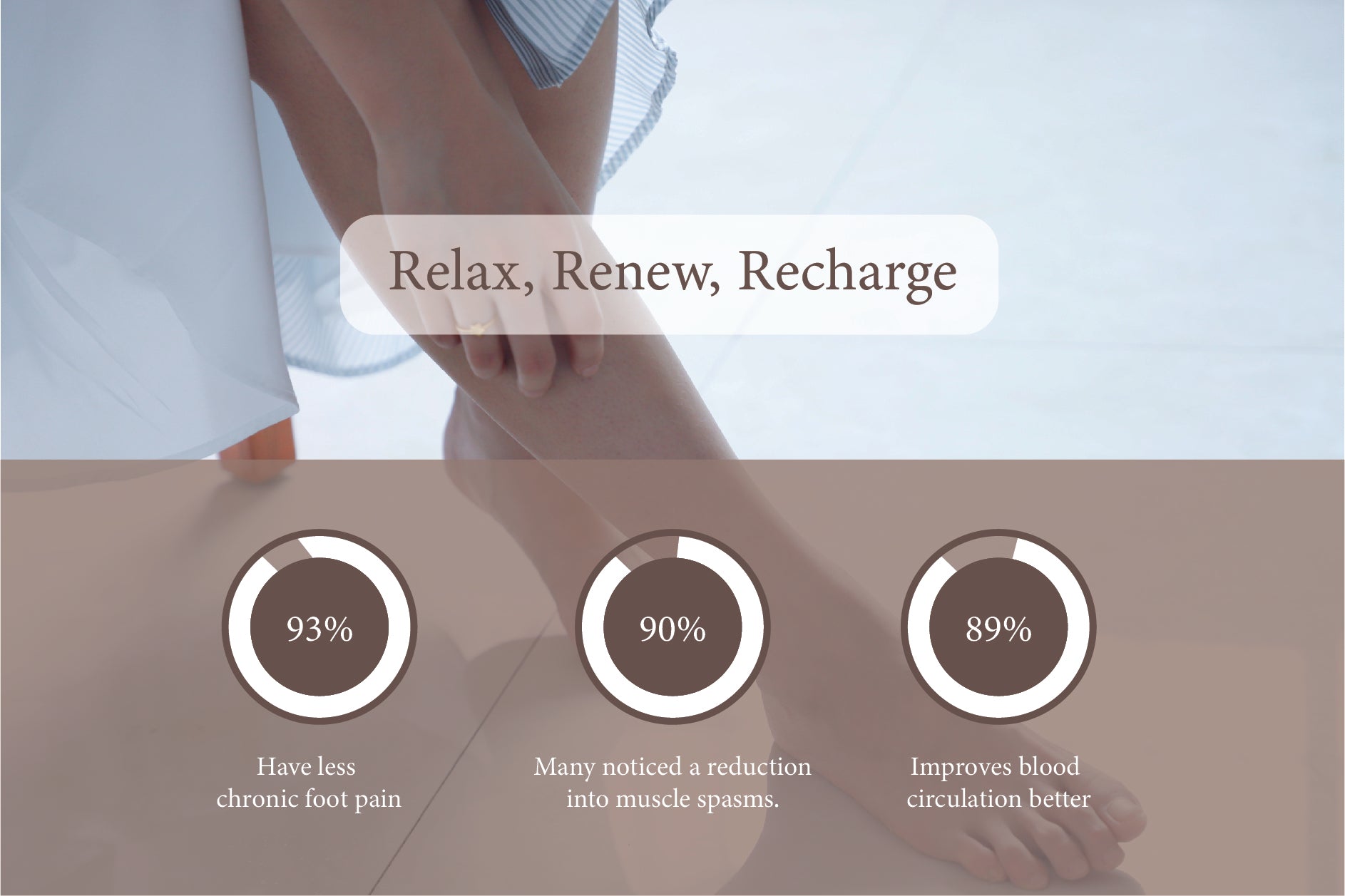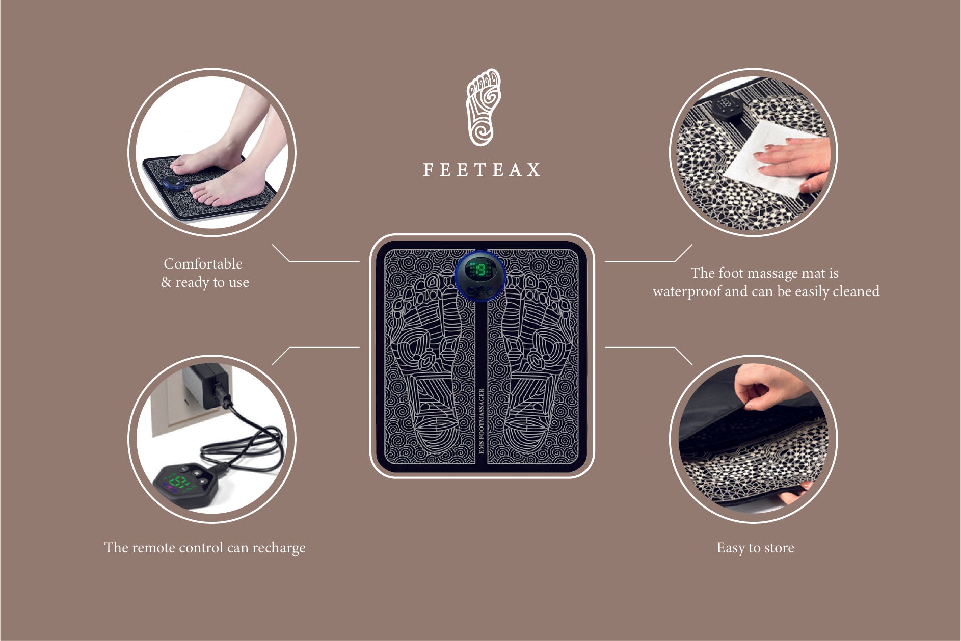 Our "Feeteax" foot massage mat's main function is to massage and relax the feet. The mat is equipped with moving and vibrating elements that massage the feet. This can help reduce muscle tension, improve circulation, and promote relaxation. Our foot mat can assist in reducing stress and enhancing overall well-being through the relaxing effects of foot massage. By providing relaxation, the use of a massage foot mat can help improve sleep quality. You can adjust the settings using the remote control without bending over! It also offers various massage modes and intensity levels.